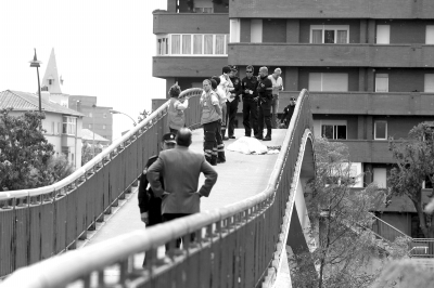12日,在西班牙莱昂市,警察和工作人员在枪击案现场取证。新华社发