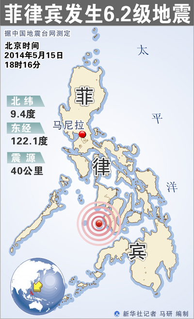 图表:菲律宾发生6.2级地震 新华社记者 马研 编制