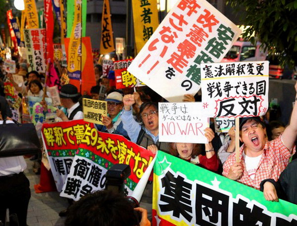 日本民众反对首相安倍晋三修改宪法解释意图(网页截图)