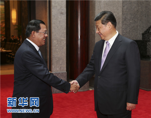 习近平表示,中方愿意同柬方继续保持高层往来,加强执政党交往,分享治国理政经验。中方支持洪森首相带领柬埔寨人民走符合本国国情的发展道路,支持柬方维护国家安全和稳定的努力,将继续为柬埔寨经济社会发展提供力所能及的帮助,推进农业、旅游等领域合作,实施好柬方水电、煤电、经济特区等项目,结合丝绸之路经济带和21世纪海上丝绸之路建设,带动基础设施互联互通。双方还要扩大人文合作,促进青年交流。