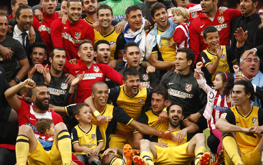 5月17日,赛后马竞全队庆祝夺得联赛冠军。