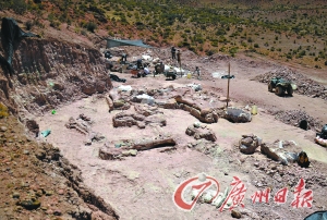 目前,由200多人组成的阿根廷考古团队还在全力进行化石的挖掘保护工作,预计全部工作完成还需要半年时间。考古学家相信,他们还会在附近发现更多的恐龙化石。