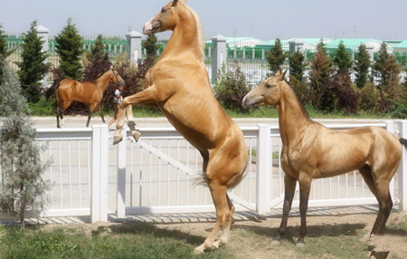 达1千万美元。土库曼斯坦驻华大使卡瑟莫夫在接受采访时指出,"土库曼人将马视作亲人对待,并只送给最好的朋友"。他表示,送给中国的这匹马将成为“土中两国和两国人民友谊的象征”。《汉书》记载,大宛国贰师城附近有一座高山,山上生有野马,奔跃如飞,无法捕捉。大宛国人春天晚上把五色母马放在山下。野马与母马交配了,生下来就是汗血宝马,肩上出汗时殷红如血,胁如插翅, 日行千里。“汗血马”这种活在史书上的传奇之马,在消失了2000年后,"奇迹"般地出现在中国公众面前。