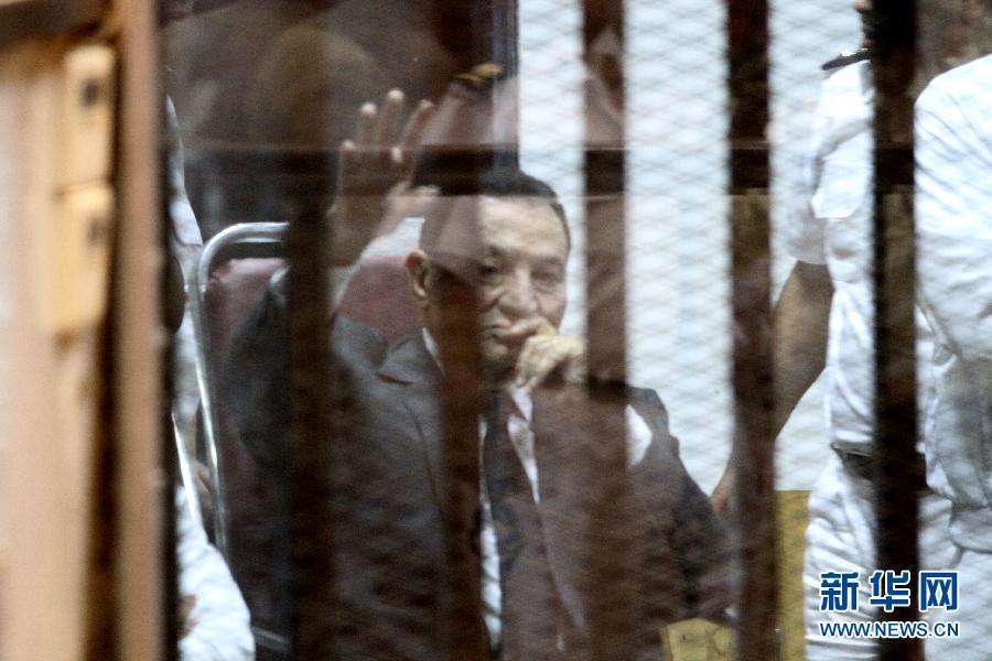 5月21日,在埃及首都开罗,埃及前总统穆巴拉克出庭受审。据埃及国家电视台21日报道,埃及开罗刑事法院当天宣布,前总统穆巴拉克因挪用公款修缮总统府被判处3年监禁。新华社发(艾哈迈德·贾米勒摄)