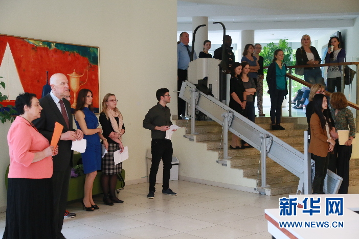 5月21日,在立陶宛首都维尔纽斯,图片展现场。当日,中国驻立陶宛大使馆和米科拉斯·罗梅瑞斯大学共同举办“美丽中国”图片展。展出图片50余幅,向观众介绍了中国的风景、民俗、文化及发展成就等方面。(记者 卜鹏 摄)