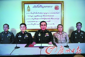 泰国陆军司令巴育·占奥差22日发表全国电视讲话,发动军事政变。