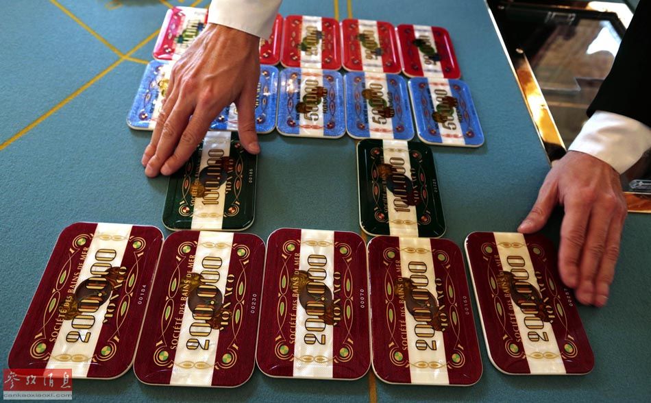 一位工作人员正在整理价值20万欧元的筹码。失踪的油画给蒙特卡洛大赌场增添了传奇的色彩,同时也刺激了影视创作的灵感。在法国电影《宝刀未老》中,惯偷鲍勃为了证明自己宝刀未老,就计划劫走赌场里的名画。(图为路透社5月16日公布的照片)