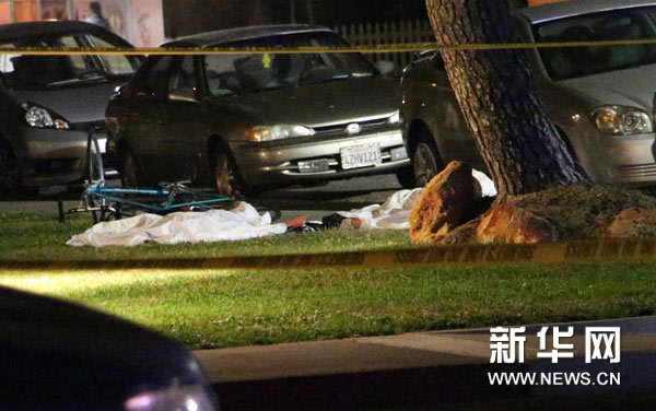 这是5月23日在美国加州大学圣巴巴拉分校附近的枪击现场拍摄的死者遗体。美国南加州圣巴巴拉县的加州大学圣巴巴拉分校附近街区23日晚发生枪击事件,造成包括枪击嫌疑人在内的7人死亡,另有7人受伤。新华社/美联