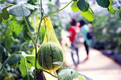 昨日,丰台区王佐镇,世界种子大会新品种展示基地的特色栽培技术区,展示了各种适合家庭阳台栽种的品种。