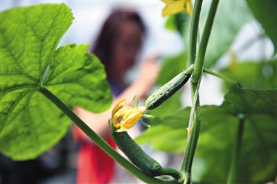 世界种子大会新品种展示基地里展示的黄瓜。