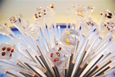 昨日,世界种子大会新品种展示基地里展示的种子。