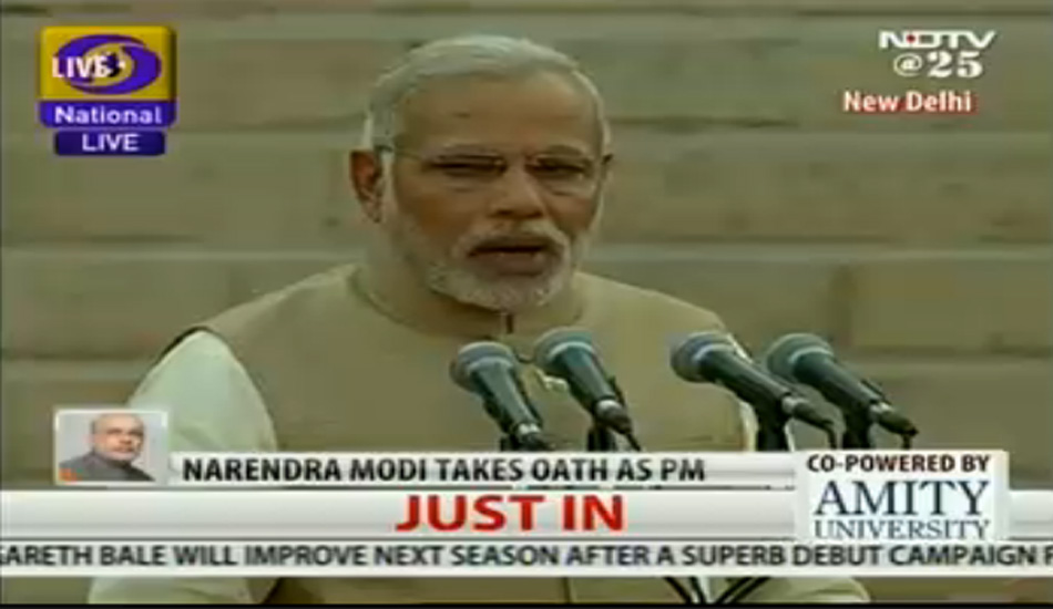 当地时间5月26日下午18时,莫迪宣誓就职,正式成为印度新一任总理(网页截图 来源:新德里电视台)