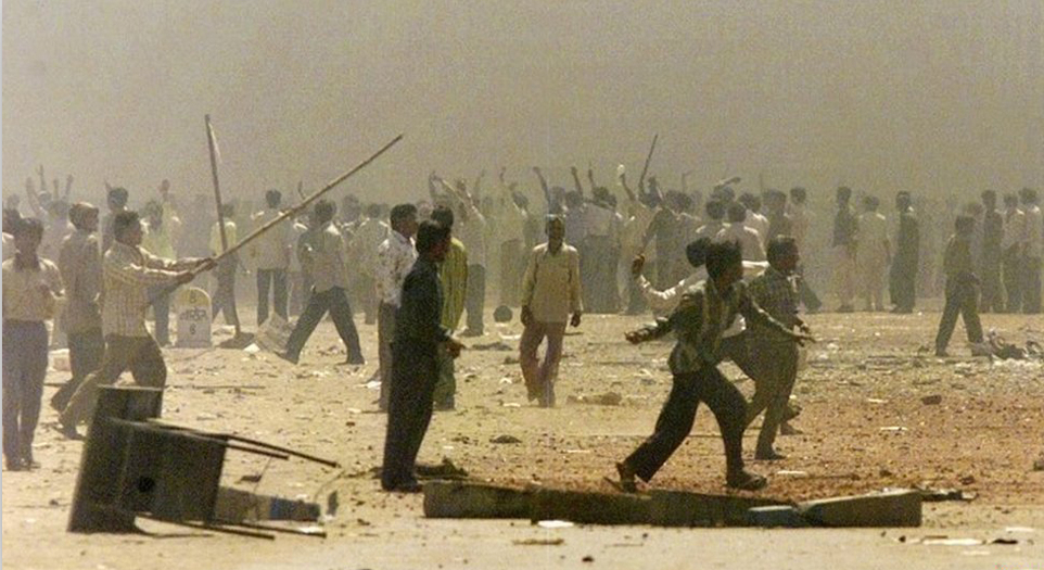 2002年,古吉拉特邦发生反伊斯兰教暴乱,超过1000人在暴动中伤亡,莫迪被指对这起事件视而不见,遭西方国家批评,莫迪的政治生涯也因此备受争议(网页截图)