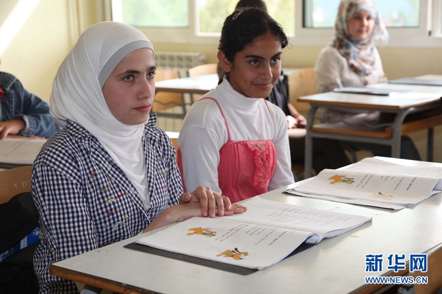 “六一”国际儿童节前夕,在黎巴嫩东部山区的贝苏尔公立学校,叙利亚难民学生在上课。(新华社记者 刘顺 摄)
