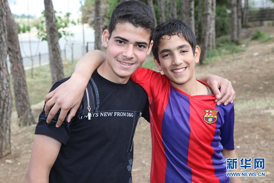 “六一”国际儿童节前夕,在黎巴嫩东部山区的贝苏尔公立学校,两名爱好体育的叙利亚难民学生希望长大后能成为足球明星。(新华社记者 刘顺 摄)