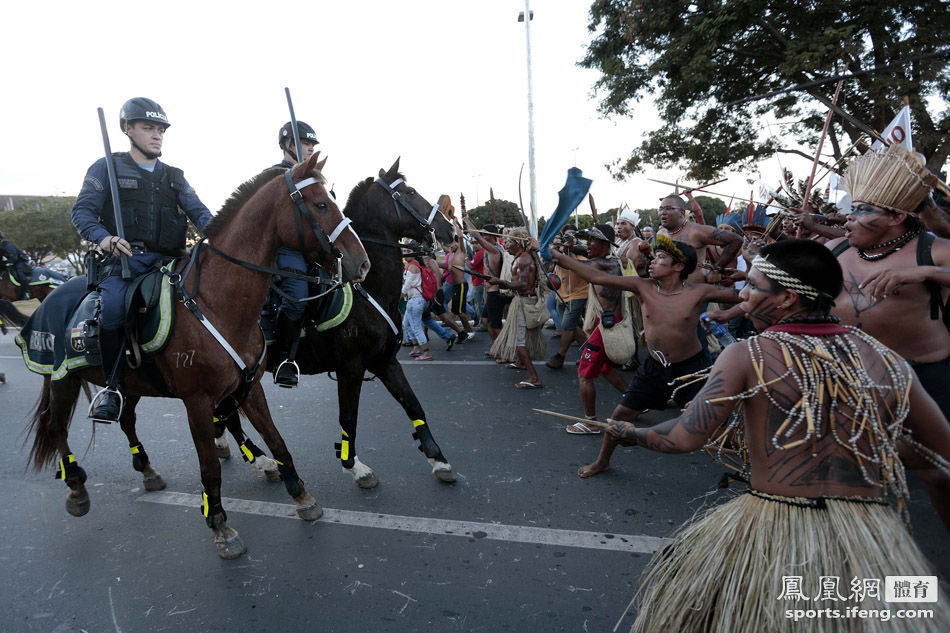巴西土著抗议世界杯 持弓箭与警方对峙