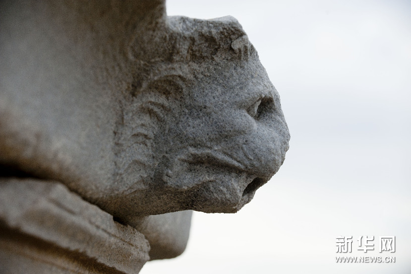 5月28日,提洛岛(Delos)狮子平台的石狮子(复制品,原件存提洛岛博物馆)局部。提洛岛位于雅典东南约150公里处的爱琴海心脏地带,是希腊最著名的文化古迹之一,1990年被列入联合国世界文化遗产名录。根据希腊神话,太阳神阿波罗就出生在该岛,也因此该岛在古代世界极为著名。岛上有爱琴海地区从公元前3000年到古基督教时代各阶段文明的遗迹,其文明对古希腊、罗马以及文艺复兴时期的文化、艺术、建筑等产生了深刻影响。公元前一、二世纪时,面积不到4平方公里的提洛岛发展成地中海地区最重要的贸易中心,人口达到2.5万人,但到公元六世纪时该岛被废弃。此处考古遗址辽阔、富饶,目前考古发掘仍在进行中。新华社记者刘咏秋摄