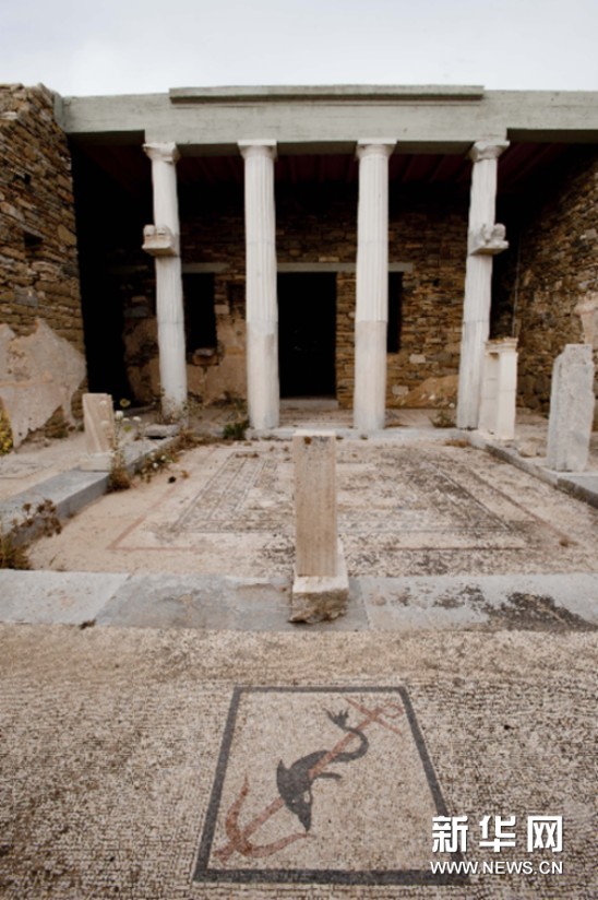 5月28日,希腊提洛岛(Delos)一处名为“三叉戟”(Trident)的民居,该民居以地板上的精美马赛克画命名。提洛岛位于雅典东南约150公里处的爱琴海心脏地带,是希腊最著名的文化古迹之一,1990年被列入联合国世界文化遗产名录。根据希腊神话,太阳神阿波罗就出生在该岛,也因此该岛在古代世界极为著名。岛上有爱琴海地区从公元前3000年到古基督教时代各阶段文明的遗迹,其文明对古希腊、罗马以及文艺复兴时期的文化、艺术、建筑等产生了深刻影响。公元前一、二世纪时,面积不到4平方公里的提洛岛发展成地中海地区最重要的贸易中心,人口达到2.5万人,但到公元六世纪时该岛被废弃。此处考古遗址辽阔、富饶,目前考古发掘仍在进行中。新华社记者刘咏秋摄