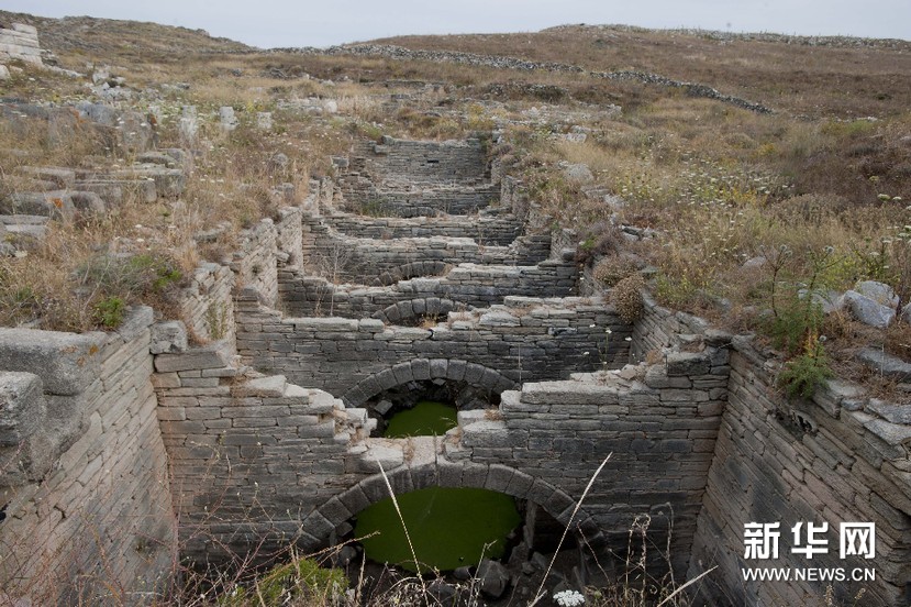 5月28日,希腊提洛岛(Delos)上的古水窖沐浴在傍晚的阳光中。提洛岛位于雅典东南约150公里处的爱琴海心脏地带,是希腊最著名的文化古迹之一,1990年被列入联合国世界文化遗产名录。根据希腊神话,太阳神阿波罗就出生在该岛,也因此该岛在古代世界极为著名。岛上有爱琴海地区从公元前3000年到古基督教时代各阶段文明的遗迹,其文明对古希腊、罗马以及文艺复兴时期的文化、艺术、建筑等产生了深刻影响。公元前一、二世纪时,面积不到4平方公里的提洛岛发展成地中海地区最重要的贸易中心,人口达到2.5万人,但到公元六世纪时该岛被废弃。此处考古遗址辽阔、富饶,目前考古发掘仍在进行中。新华社记者刘咏秋摄
