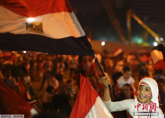 图为当地时间5月28日,塞西的支持者庆祝胜利。