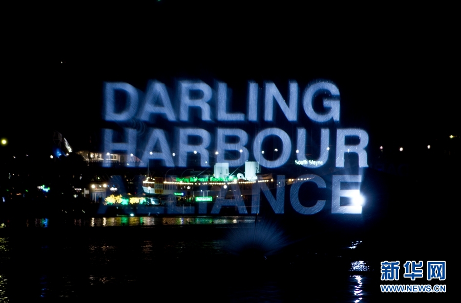 5月29日在澳大利亚悉尼达令港举行的水上灯光秀。新华网记者 金林鹏 摄