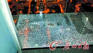 据外国媒体报道,近日,当一个家庭参观芝加哥这座摩天大楼并坐在观景台拍照时,遭受到了无与伦比的惊恐,因为他们脚下400米高的玻璃地面开裂了(如图),并发出了一阵阵破裂的声音。大厦员工紧急疏散了所有的游客。 (中新)