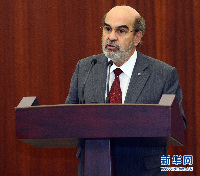 6月6日,在乌兹别克斯坦首都塔什干国际会议宫,联合国粮农组织总干事若泽·格拉齐亚诺·达席尔瓦在讲话。(沙达提 摄)