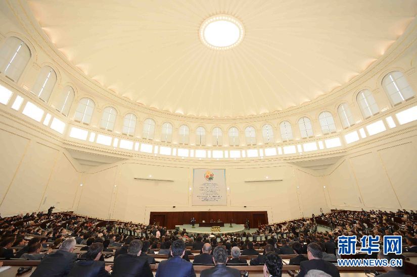 6月6日,在乌兹别克斯坦首都塔什干国际会议宫,会议现场。(沙达提 摄)