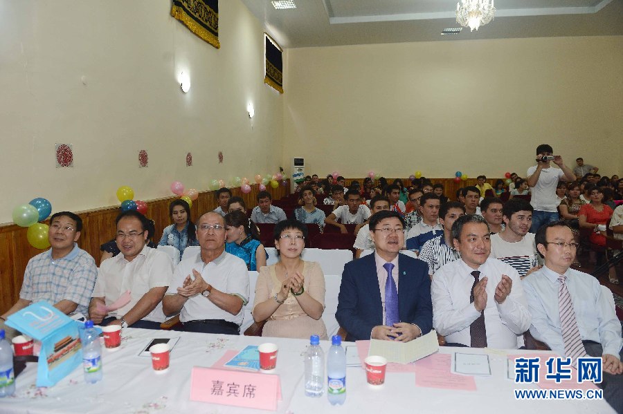 6月9日,乌兹别克斯坦首都塔什干的乌世界语言大学礼堂活动现场。