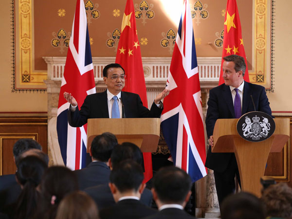 在颇有古典特色的英国外交部大楼内,中国国务院总理李克强与英国首相共同见证了两国间一系列合作文件的签署。