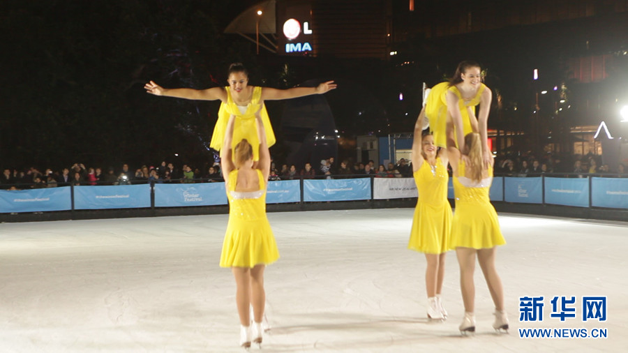 6月13日起,为期1个月的大型冬季冰雪活动在悉尼市中心的情人港(Darling Harbour)为悉尼市民冬季的生活增添了些许名副其实的冬季气氛。图为滑冰场开幕式上,冰舞演员翩翩起舞。新华社记者 李冰 摄