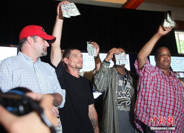 当地时间25日,中国富豪陈光标在纽约中央公园船屋餐厅举行慈善午宴,宴请200多名贫民与流浪汉用餐。