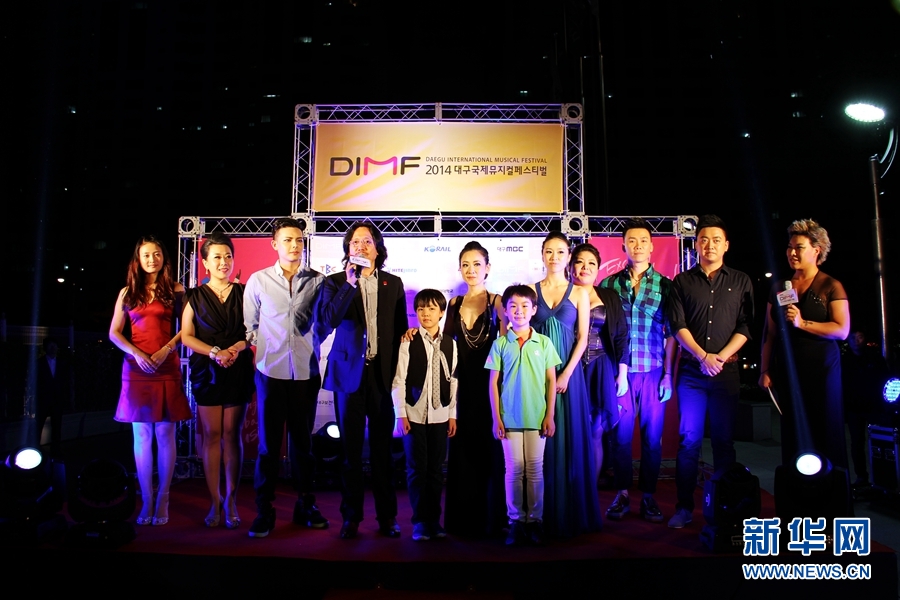 《妈妈再爱我一次》制作人李盾(左四)与主演们亮相大邱国际音乐剧节。