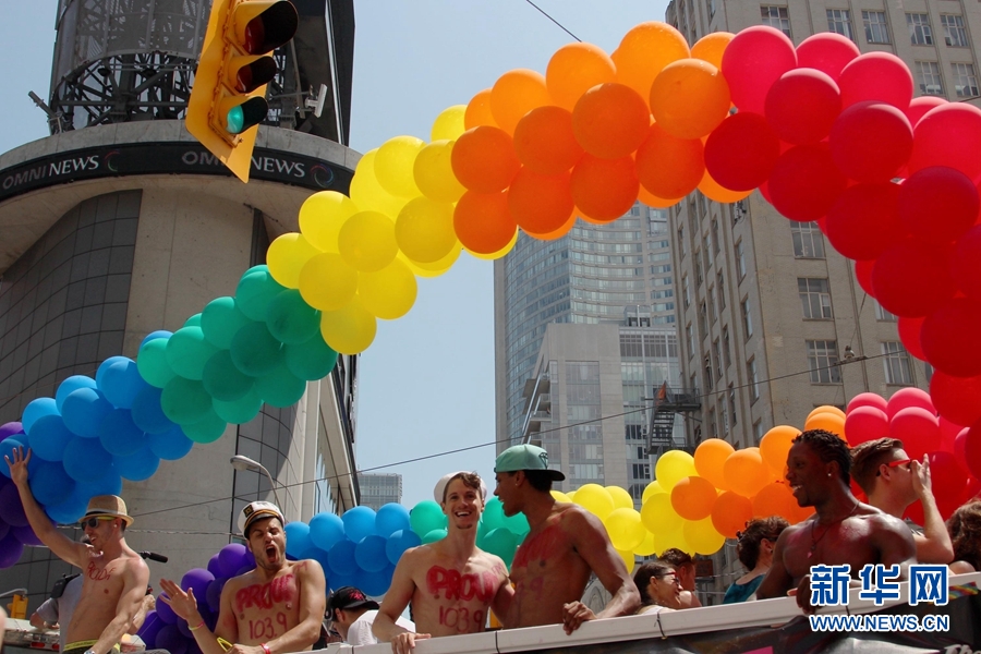 6月29日,在加拿大多伦多,狂欢者在游行中。新华网 曾德金摄