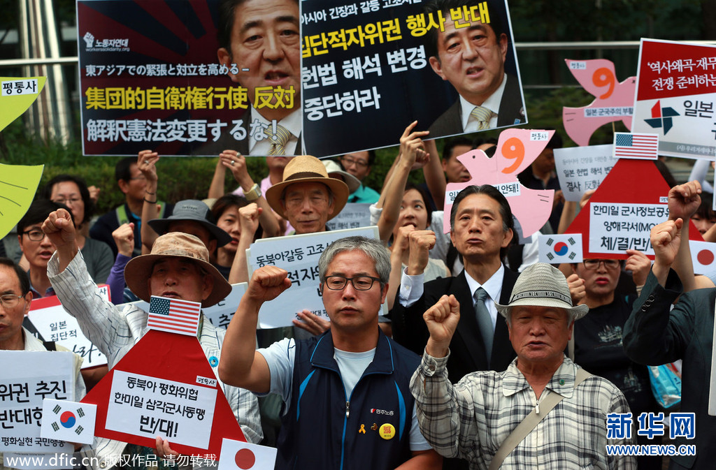 韩国民众集会抗议日本解禁集体自卫权(组图)