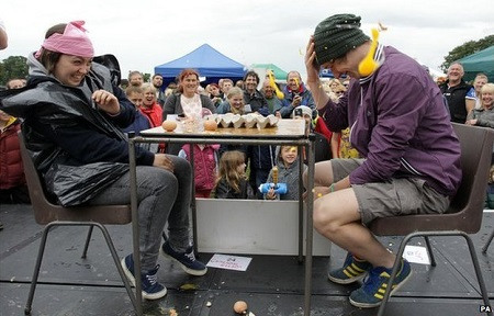 据介绍,“扔鸡蛋比赛”受到英国运动委员会的承认,今年是这项赛事举办的第九年。比赛的组织者表示,尽管有些人认为扔鸡蛋不是什么真正的运动,但是许多参赛者对待比赛的态度非常认真。