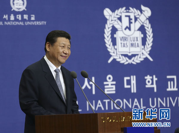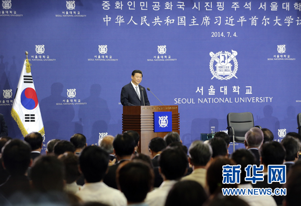 7月4日,国家主席习近平在韩国国立首尔大学发表题为《共创中韩合作未来 同襄亚洲振兴繁荣》的重要演讲。 新华社记者 兰红光 摄