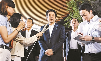 7月3日,日本东京,日本首相安倍晋三在官邸接受采访。日本政府7月3日起将解除对朝鲜的部分经济制裁,以回应朝鲜政府此前曾答应将全面调查“被绑架和失踪的日本人”供图/CFP