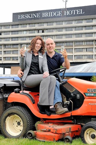据英国《每日纪事报》7月3日报道,日前,英国伦弗鲁郡(Renfrewshire)厄斯金桥酒店出现了浪漫一幕:偌大的酒店草坪上赫然显示着求婚词。此举为酒店员工安迪·卡梅伦(Andy Cameron)的创意,目的是想借修建草坪的方式向女友凯莉·霍森(Kayleigh Hawthorn)求婚。凯莉惊喜万分,求婚成功。