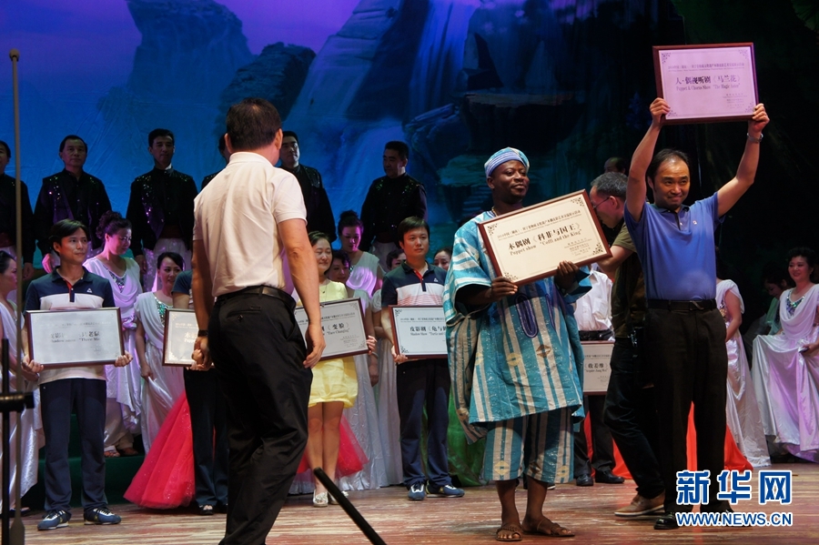 6月30日,参加中国(湖南)贝宁非物质文化遗产木偶皮影艺术交流展示活动的剧团被授牌。 (贝宁中国文化中心供图)