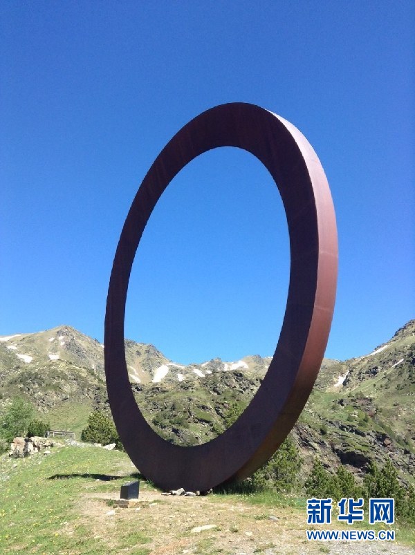 安道尔境内山路边上的一个雕塑,根据旁边的说明,这个圆环象征着“永恒与宁静”。(周喆 摄)