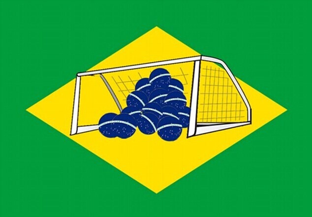 10 国旗成球门:巴西国旗被恶搞成塞满“足球”的球门。