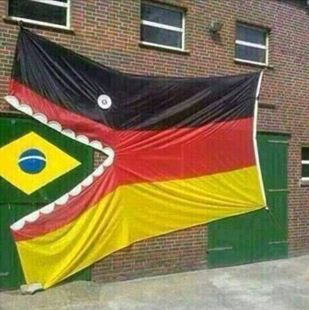 8 国旗战争:德国国旗被塑造成鲨鱼的样子,“吃掉了”巴西。