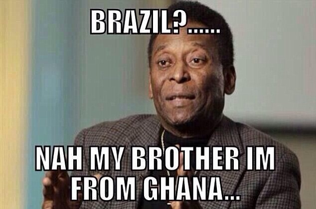 7 巴西蒙羞:网友恶搞来自巴西的球王贝利。贝利:巴西?额……哥们儿,我来自加纳。(加纳也有一位叫贝利的球员,阿贝迪 贝利)