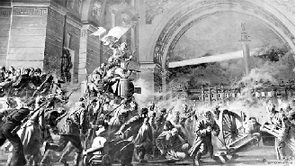 描述十月革命期间圣彼得堡革命者攻占冬宫场景的绘画(资料图片)
