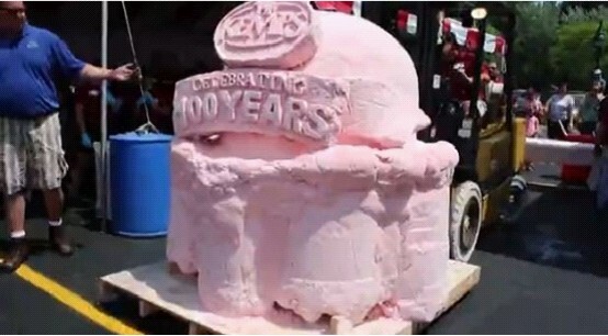 据香港《文汇报》7月9日报道,美国威斯康星州一家牛奶公司近日为庆祝成立100周年,特别制作重达3010磅(约1.36吨)的全球最大冰淇淋球,该蛋糕已获吉尼斯世界纪录大全确认。
