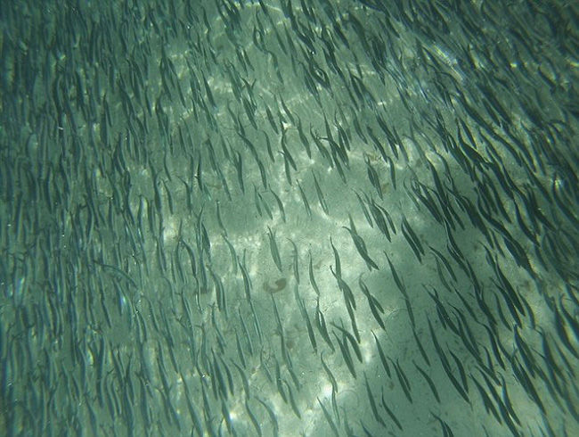 美国一海岸鱼群聚集“染黑”海水(高清)