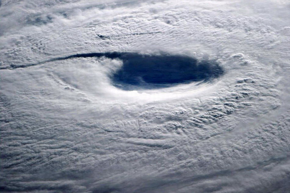 7月8日,宇航员里德·怀斯曼(Reid Wiseman)在位于400千米高空的国际空间站拍下台风“浣熊”的台风眼(网页截图)