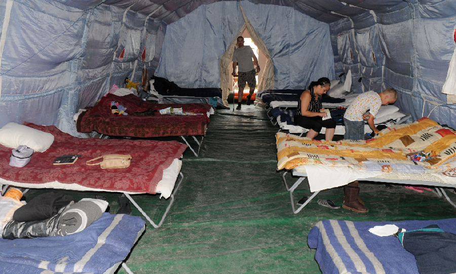 7月9日,大约80名中外记者前往俄罗斯西南部罗斯托夫州城市新沙赫京斯克,探访两处乌克兰难民临时安置点。新沙赫京斯克的安置点设有40个帐篷,除用于难民登记和后勤目的外,每个帐篷内摆设14张简易单人床,可容纳大约500名难民。安置点也为儿童配备了一些娱乐和体育设施。顿斯科伊原为一座疗养院,现收容100余人。俄罗斯外交部提供的数据显示,截止9日上午7时,超过2万乌克兰公民已经向俄罗斯申请难民身份。新华社记者刘红霞摄