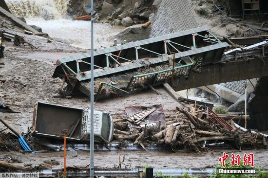 台风浣熊导致日本长野县下属南木曾町发生泥石流,混合着碎石的泥浆涌到街上。